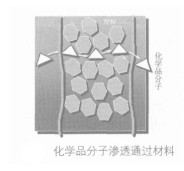 滲透是指化學(xué)物質(zhì)在防護(hù)服材料中溶解或化學(xué)物質(zhì)以分子運(yùn)動(dòng)的方式穿透防護(hù)服材料的過程。即分子首先吸附在界面上, 然后通過分子運(yùn)動(dòng)到達(dá)材料另一邊, 最后通過解吸透出。