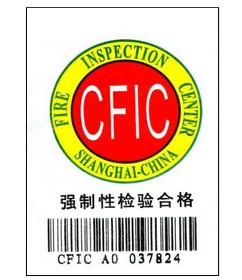 3、消防員滅火防護服作為強制檢驗產(chǎn)品,應(yīng)在產(chǎn)品上加施強檢標志,應(yīng)在每件消防員滅火防護服舒適層標簽旁縫制一個強檢標志,分體式的尚需在防護褲子舒適層褲袋處縫制一個相同的標志,如圖所示,尺寸應(yīng)為60mm×90mm。同時,將一件新的消防員滅火防護服,平鋪在桌面上,打開拉鏈,在防護服的內(nèi)側(cè)即舒適層上查看是否有國家消防裝備質(zhì)量監(jiān)督檢驗中心的批檢標志,并記錄下批檢號,從檢驗中心網(wǎng)站上查詢該生產(chǎn)企業(yè)的批檢合格號碼的范圍,確認其真實性。