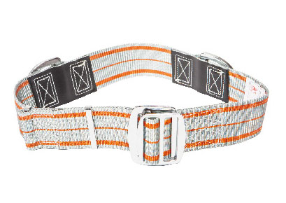 ·消防安全腰帶是一種緊扣于腰部的帶有必要金屬零件的織帶,用于承受人體重量以保護(hù)其安全,適用于消防員登梯作蚜口逃生自救。消防安全腰帶帶長(zhǎng)連續(xù)可調(diào),由織帶、內(nèi)帶扣、外帶扣、環(huán)扣和兩個(gè)拉環(huán)等零部件構(gòu)成。消防安全腰帶的設(shè)計(jì)負(fù)荷為1.33N,其質(zhì)量不超過(guò)o.85kg??棊橐徽瑹o(wú)接縫,其寬度為{70±1)mm。具有靜負(fù)荷性能、抗沖擊性能、耐高溫性能以及金屬零件的耐腐蝕性能。