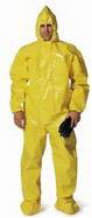二級化學(xué)防護服是用于危險場所作業(yè)(除面部外)的全身保護服裝。•具備重量輕、防酸堿等性能。主體膠布抗毒劑滲透時間不低于100分鐘;主體膠布拉伸強度經(jīng)向不低于15000牛頓/米,緯向不低于13000牛頓/米。主體膠布抗撕裂強度不低于50牛頓;膠層與織物粘合強度不低于780牛頓/米;主體膠布耐熱性能:120℃×8小時不沾、不脆。