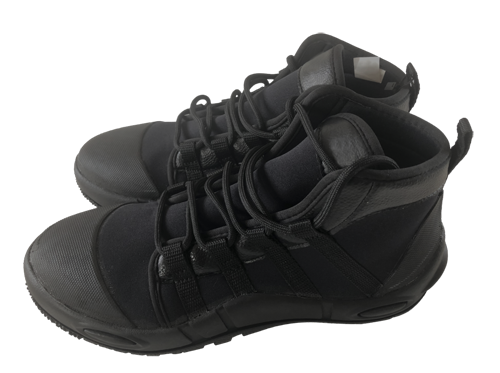 堅固耐用的系帶式水上運動鞋,合成皮革和5MM氯丁橡膠面料鞋幫,7MM氯丁橡膠內底具有良好緩沖性。高強度凸塊花紋合成橡膠大底,堅固耐磨,止滑性好,抓地能力強。后跟部位設有蛙鞋帶止滑凸塊,可與蛙鞋穩(wěn)固結合。鞋帶和踝魔術貼束帶組成閉合系統(tǒng),行動中舒適貼合足部